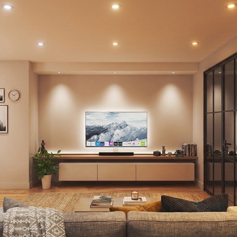 Install concealed LED strips in ceiling recesses to create soft, indirect lighting that adds depth and warmth to your living area. Perfect for creating a relaxed, cozy atmosphere.